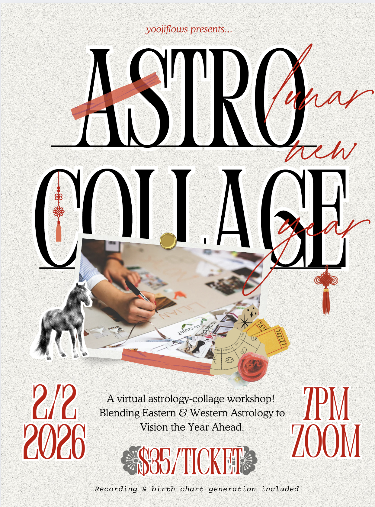 Welcome the Lunar New Year of the Horse by aligning your intentions with the stars. In this live, interactive Zoom workshop, we’ll use your full birth chart + the 12 houses as a framework to create a vision board rooted in your cosmic blueprint.